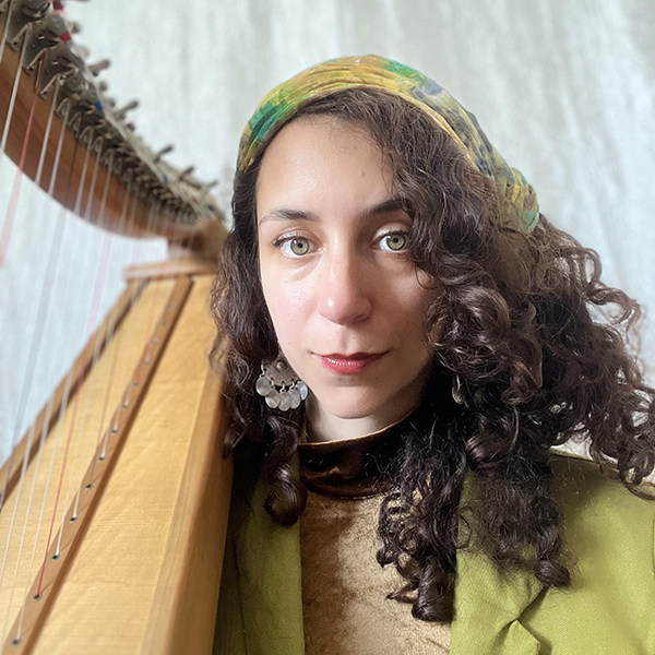 Mona Hilaly is a multi-instrumentalist musician and researcher of Moroccan origin. Growing up in a cultural environment shaped by her Moroccan diaspora father and Franco-Spanish mother from Algeria, she learned to move between diverse cultural worlds. Nonetheless, the Mediterranean was a constant.